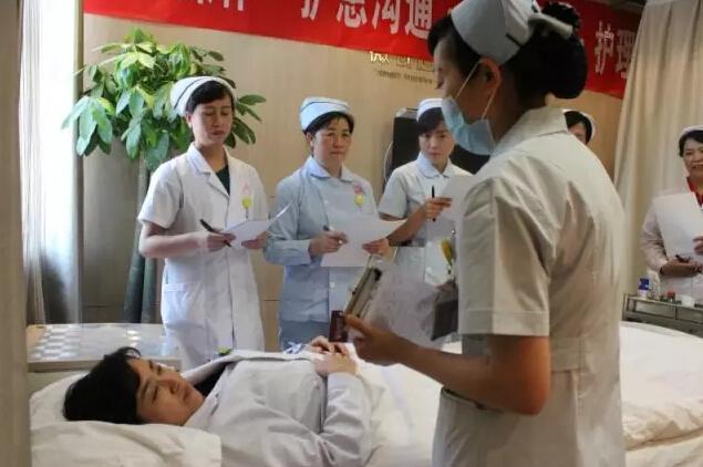 自4月下旬起,护理部组织全院各科室开展了护理技能专项培训,全院各护理单元经过反复练习和初步评比,选派5名优秀护士代表参加比赛。5月4日,全院“密闭式静脉输液技能竞赛”、“护患沟通服务竞赛”、“护士礼仪”竞赛举行,全院近20名护士代表参加了评比。护理部主任、各科室护士长承担考核工作,从每一位参赛代表的“仪表端庄、衣装整洁、用物准备、环境准备、病人情况评估、操作流程规范、操作熟练程度”等方面予以综合评分,对熟练掌握基础护理和专业护理知识、护理操作技术娴熟、成绩突出的护士予以表彰和奖励,极大地增强了护士的职业荣誉感,进一步增强了“以人为本、细节服务”的理念。在全院营造出了一种“学业务、比技能、看服务、练内功”的积极向上、严谨认真的工作氛围,将护理工作真正地做到了实处、做到了细微处。